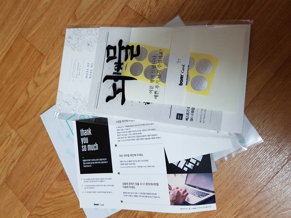 Áý¿¡ ¿ÀÀÚ¸¶ÀÚ »ìÆìº¸¾Ò´Âµ¥ ¹Ú½º¾È¿¡´Â ûøÀå¿¡ »Ñ¸± Çâ¼ö°¡ µé¾î ÀÖ°í, ÀúÈñ°¡ ½ÅûÇÑ ½ºÆ¼Ä¿ ¿Ü¿¡µµ Ưº°ÇÑ ½ºÆ¼Ä¿µéÀÌ µ¿ºÀµÇ¾îÀÖ¾ú¾î¿ä. ¶ÇÇÑ 300Àå ÀÌ»ó ÁÖ¹®ÇÏ¸é °íÄ÷¸®Æ¼ÀÇ ¾ÆÆ®Äµ¹ö½º¸¦ Áִµ¥ ÀúÈñ´Â 400ÀåÀÌ¶ó¼ ¿ì¸®ÀÇ Ãß¾ïÀÌ ´ã±ä »çÁøÀ» ³ÖÀº ¿¹»Û ¾ÆÆ®Äµ¹ö½º±îÁö ¹Þ¾Æº¼ ¼ö ÀÖ¾ú½À´Ï´Ù.